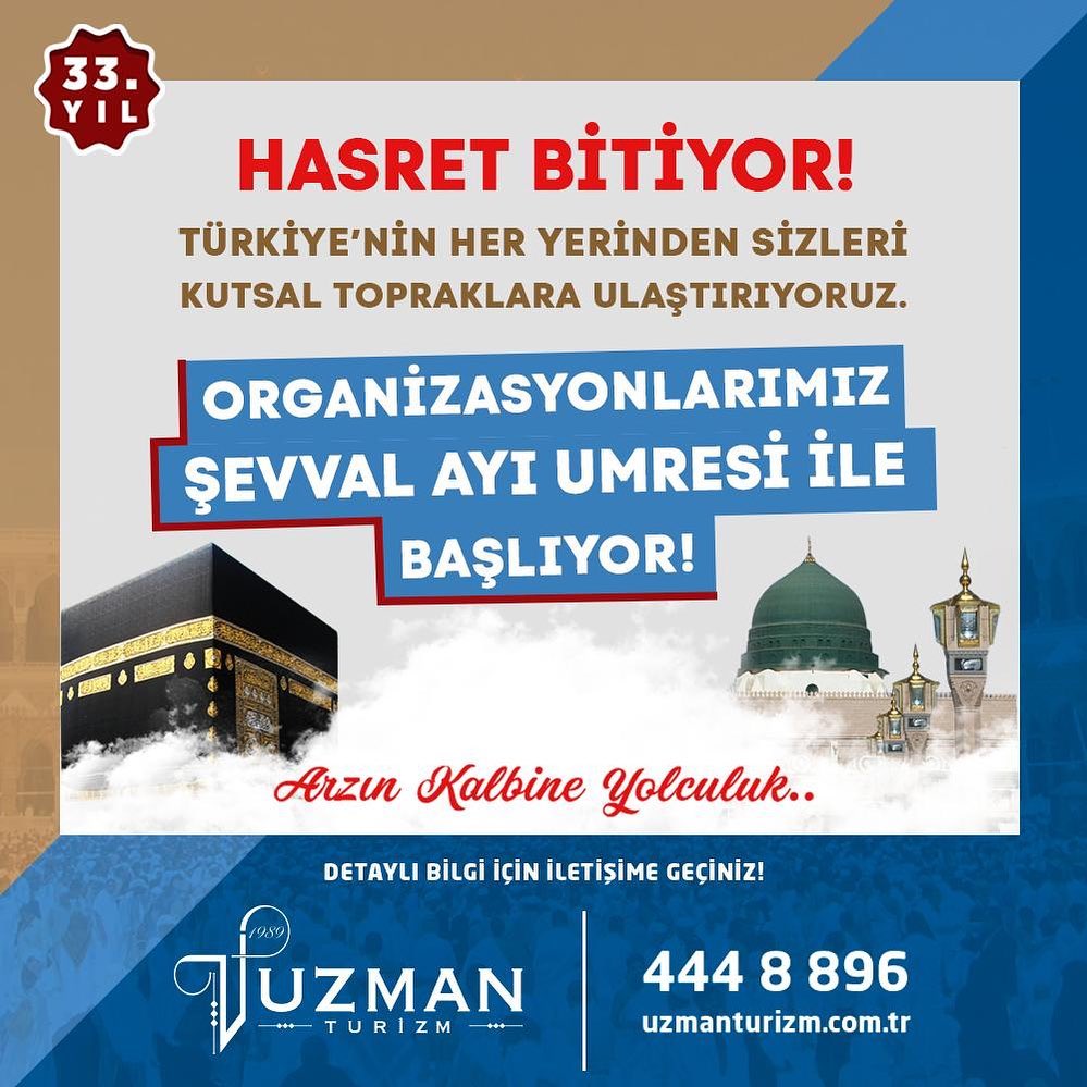 Kalite ve başarının öncüsü Uzman Turizmden her bütçeye uygun 2022 - 2023 şevval umre turları sizlerle.